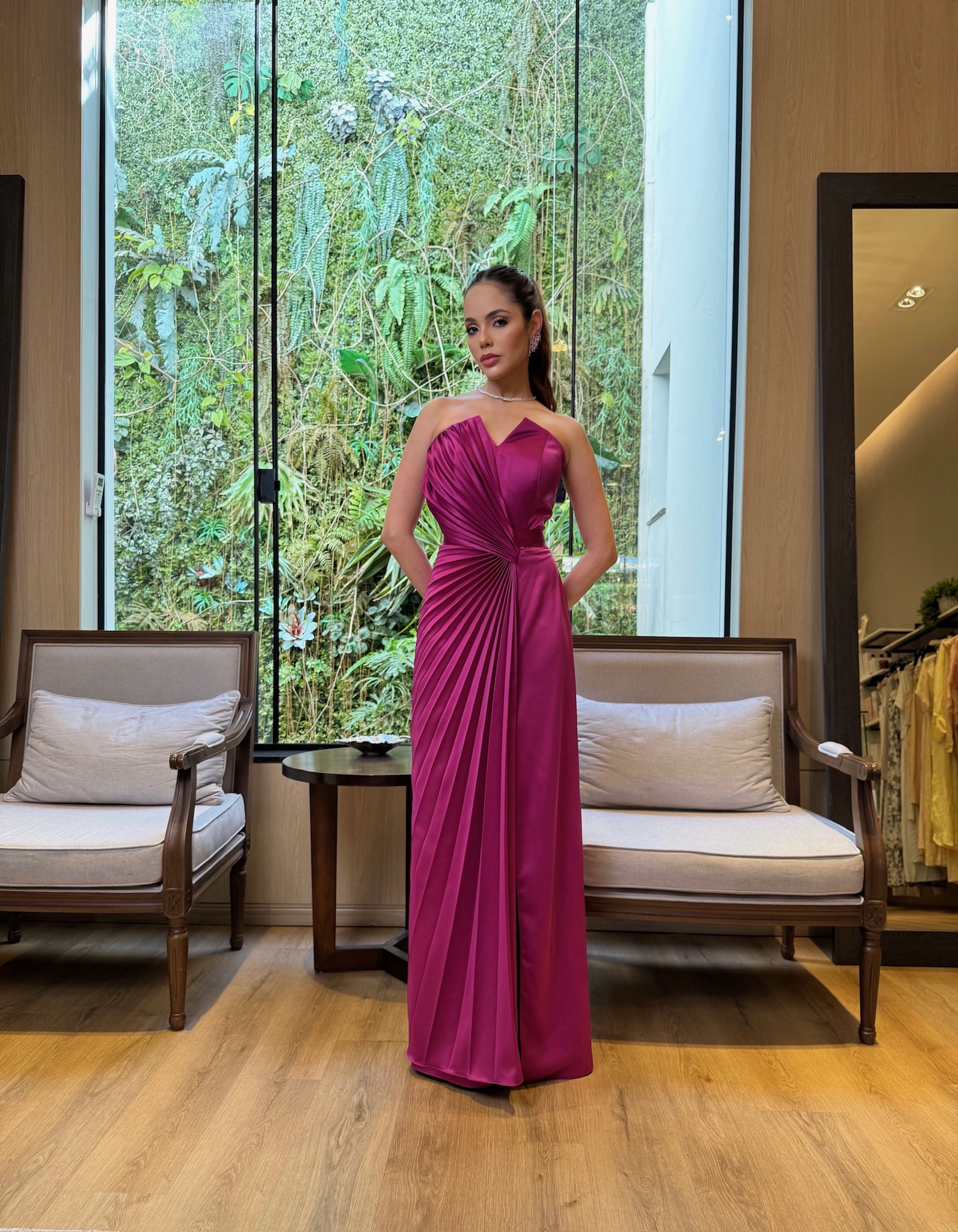 Vestido Longo Sem Alça Det Plissado