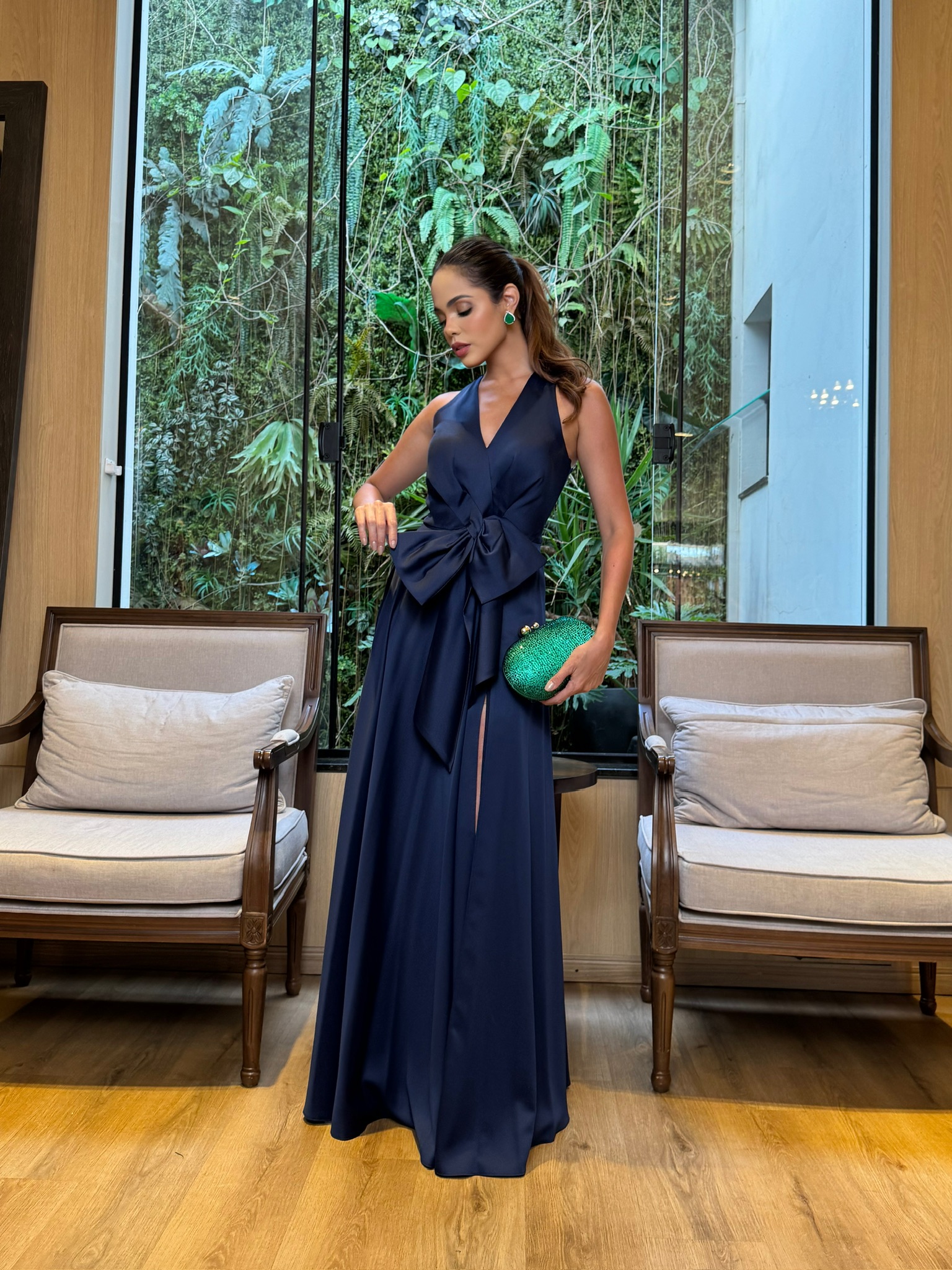 Vestido Longo Laço/ Fenda