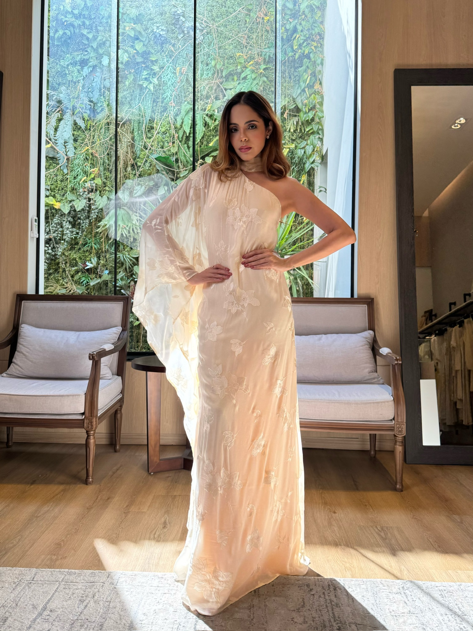 Vestido Longo Ombro Só Bordado