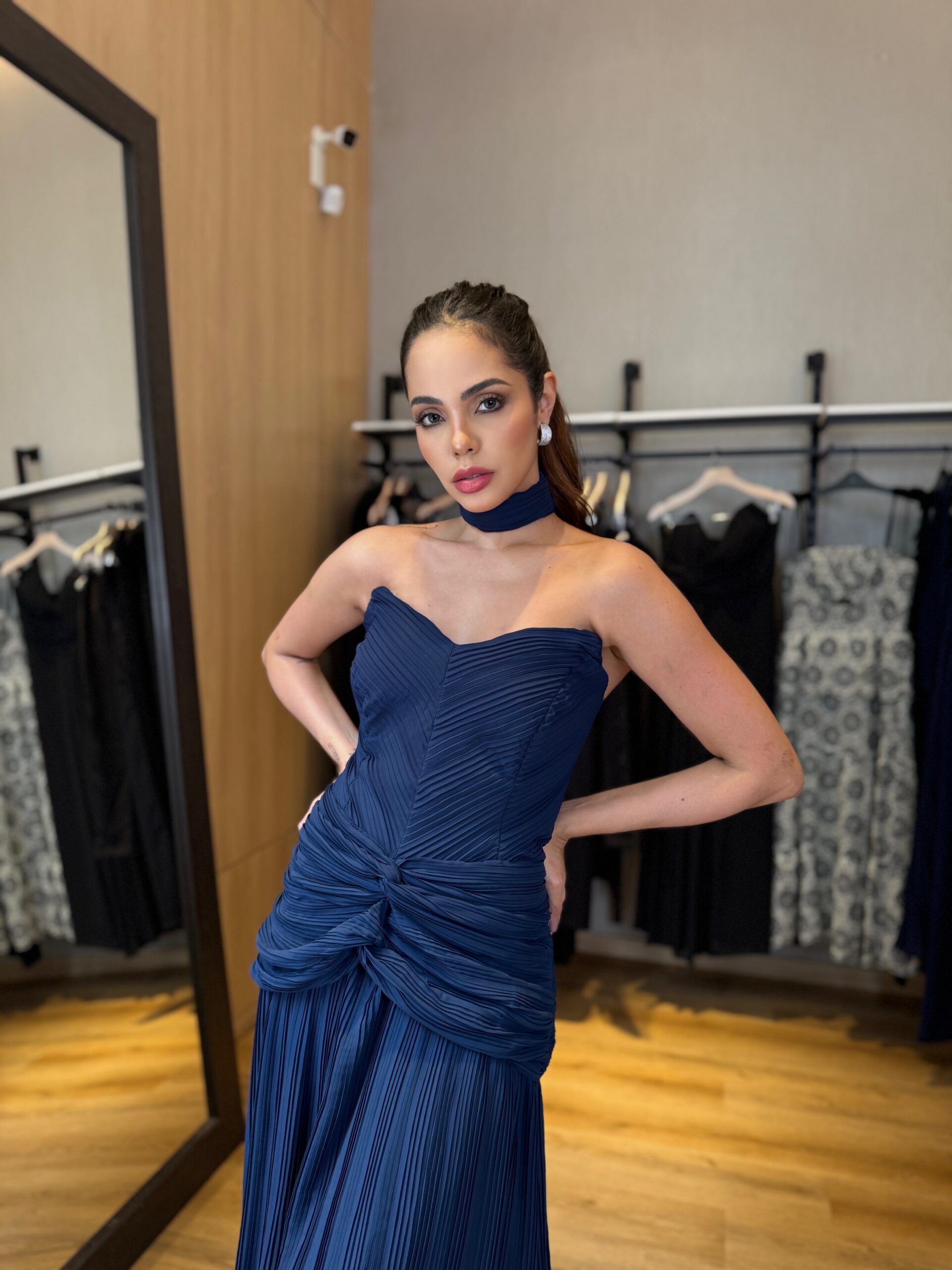 Vestido Longo Sem Alças/ Plissado