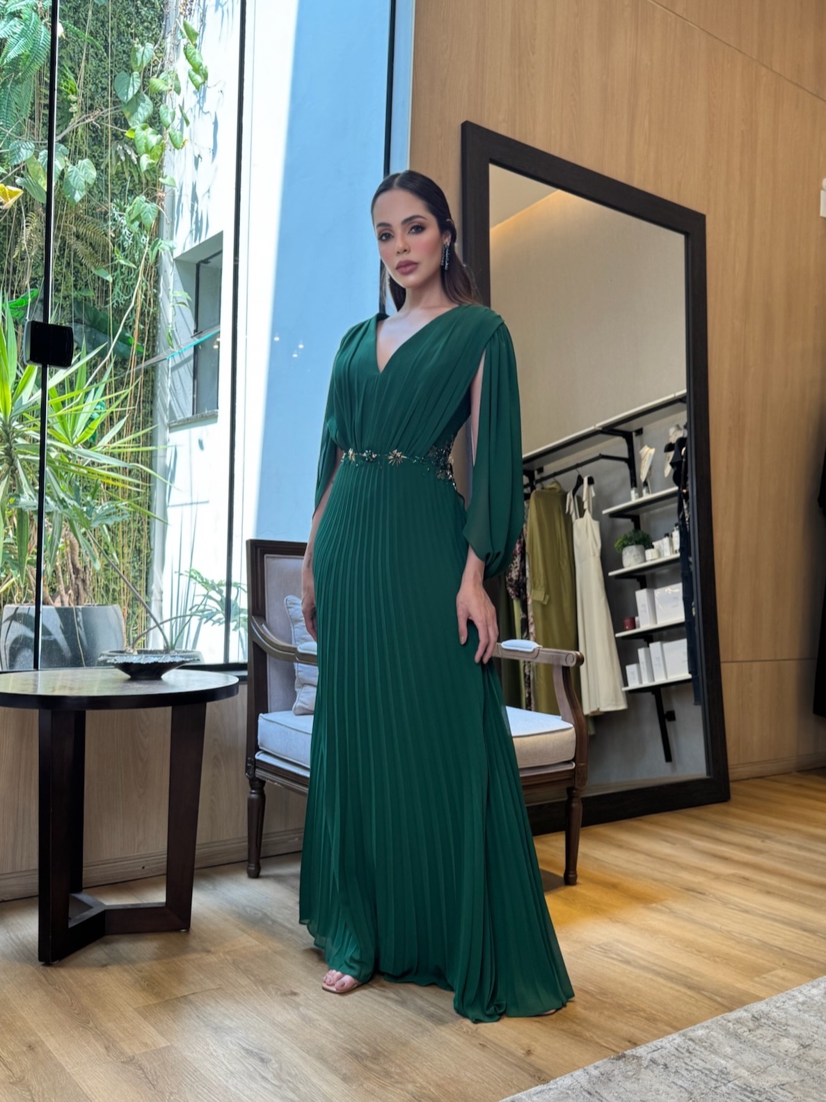 Vestido Longo Capa Plissado